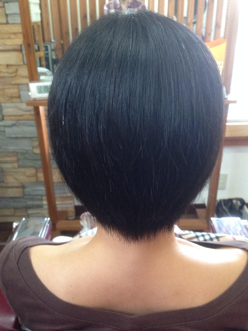 ▼バランス良く毛量を調節して、衿足はタイトに整えました。
